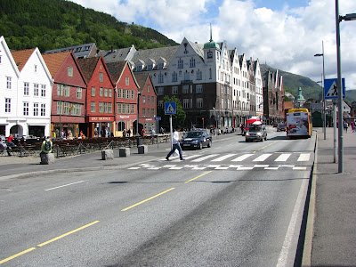 2009-06-16 ベルゲンにて 未分類 「一年の80%は雨」とまで言われるベルゲンには珍しく、空はからりと晴れていた。市内をぶらぶらと歩いてまわる。市場でサーモンを食べ、ブリッゲン地区を歩き、周遊バスに乗る。街の雰囲気は去年訪れたヘルシンキに似ている。でも、もっと小さな街だ。山に囲まれた船着き場。ケーブルカーに登って見晴らせば、それが一望できる。ブリッゲン地区だけでなく、街並みには、どこか時間の流れから取り残されたような風情が漂っている。